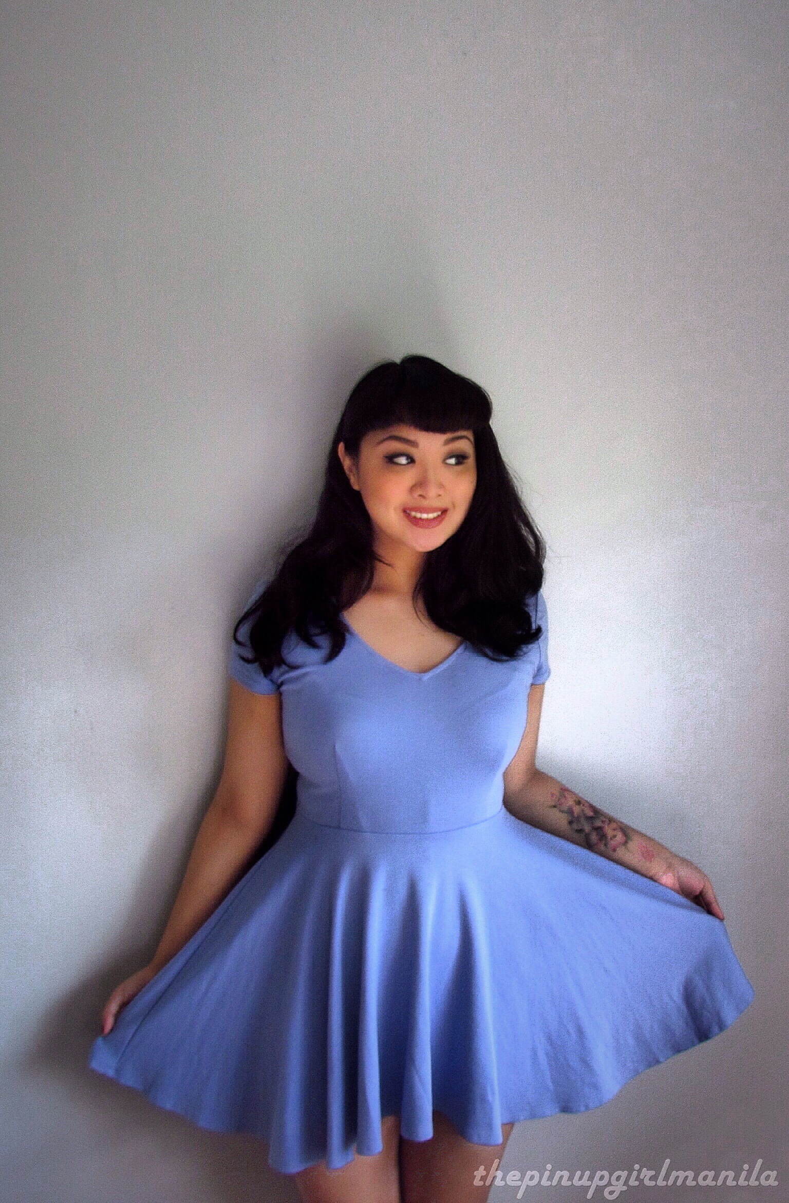 I decided not to add any accessories and no red lip for this look. Almost against the pinup style; the dress is structured well enough to make it look cute and casual. For my hair a simple side pin and a little fluff to my Bettie bangs.