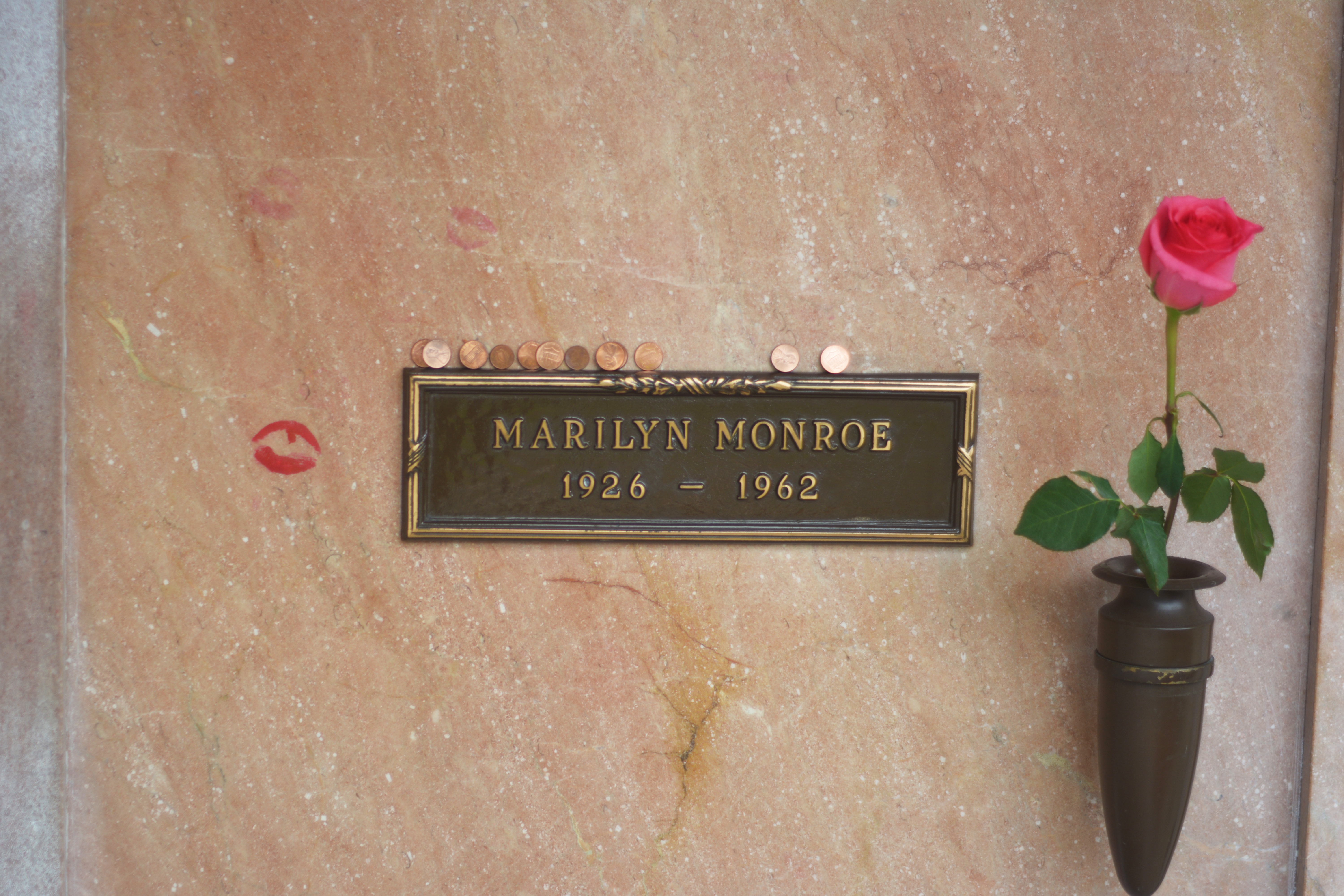 Her headstone is simple, baring just her name and the short 36 years of her life. The stones have changed color from the millions of visitors from the past years of leaving a trademark kiss.