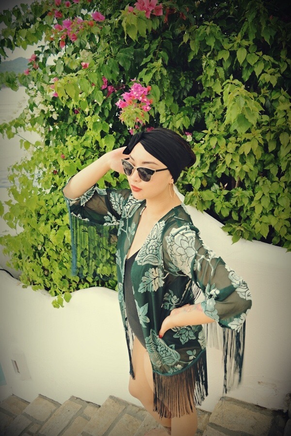 Tried something different over the weekend. Combined some styles from the 1920s after finding some pieces at, yes, Forever 21! I found this wonderful cover featuring a flower velvet print and of course fringe!