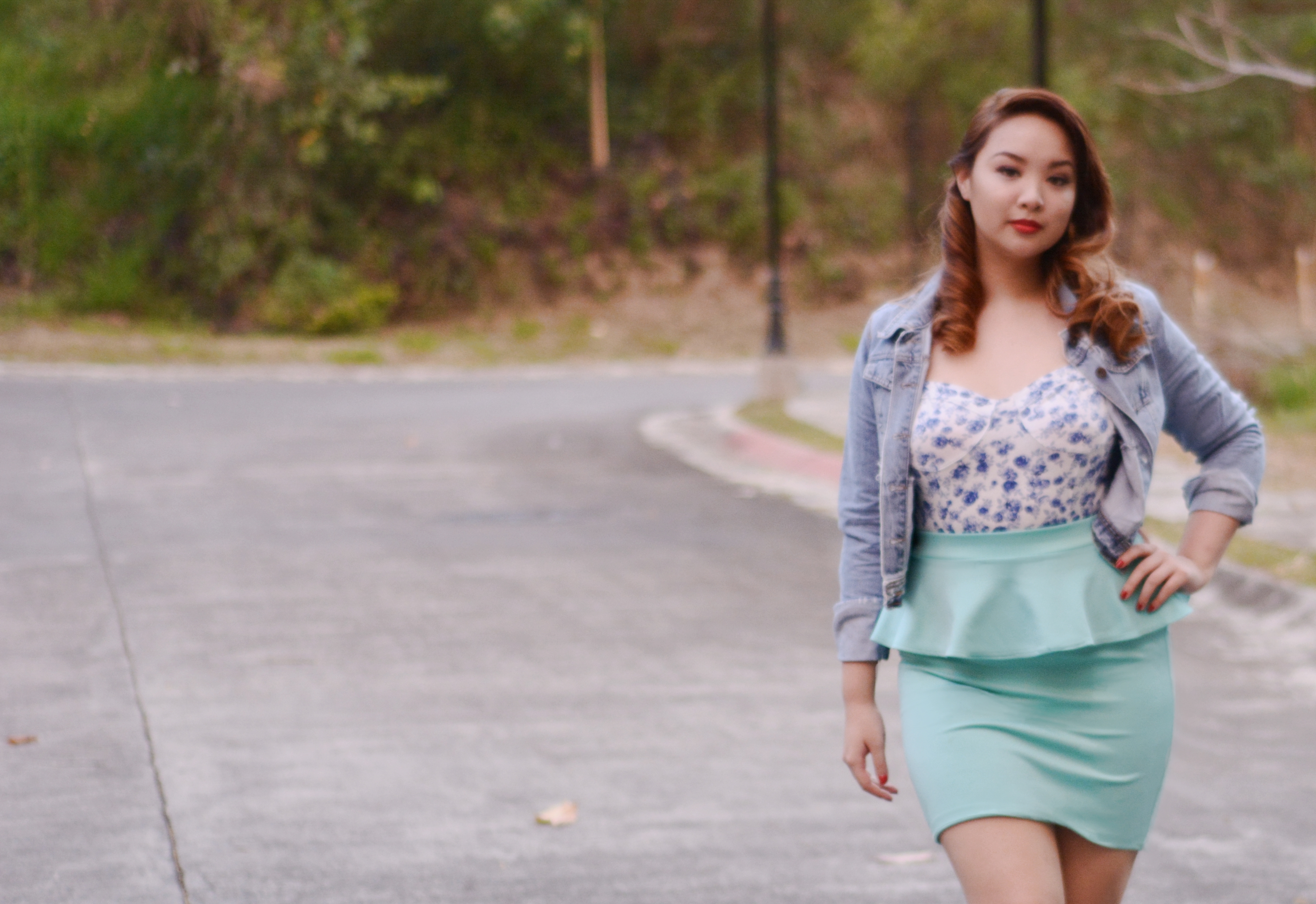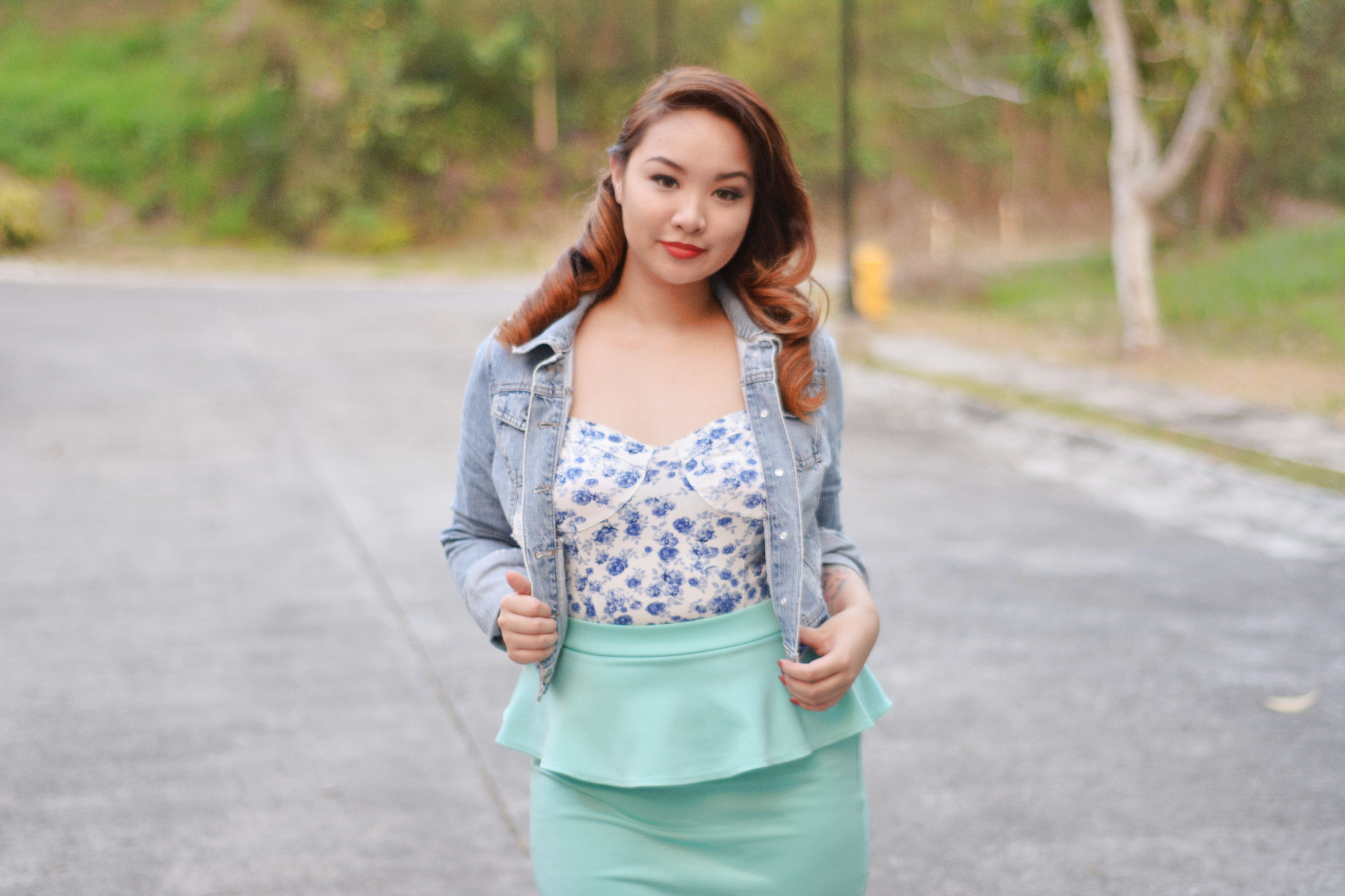A light colored wardrobe is in play now, and with this pretty teal peplum skirt makes me feel all summery (if thats a word). I bought it back when I had big red mermaid hair, and when I would wear this…ala Ariel! The top is a china floral print in a bustier structure so it’s fun for summer and perfect for the heat. A denim jacket during the humid hell of summer? Don’t worry it’s a very light jacket and needed for when at night the summer night becomes cool and eerie.
